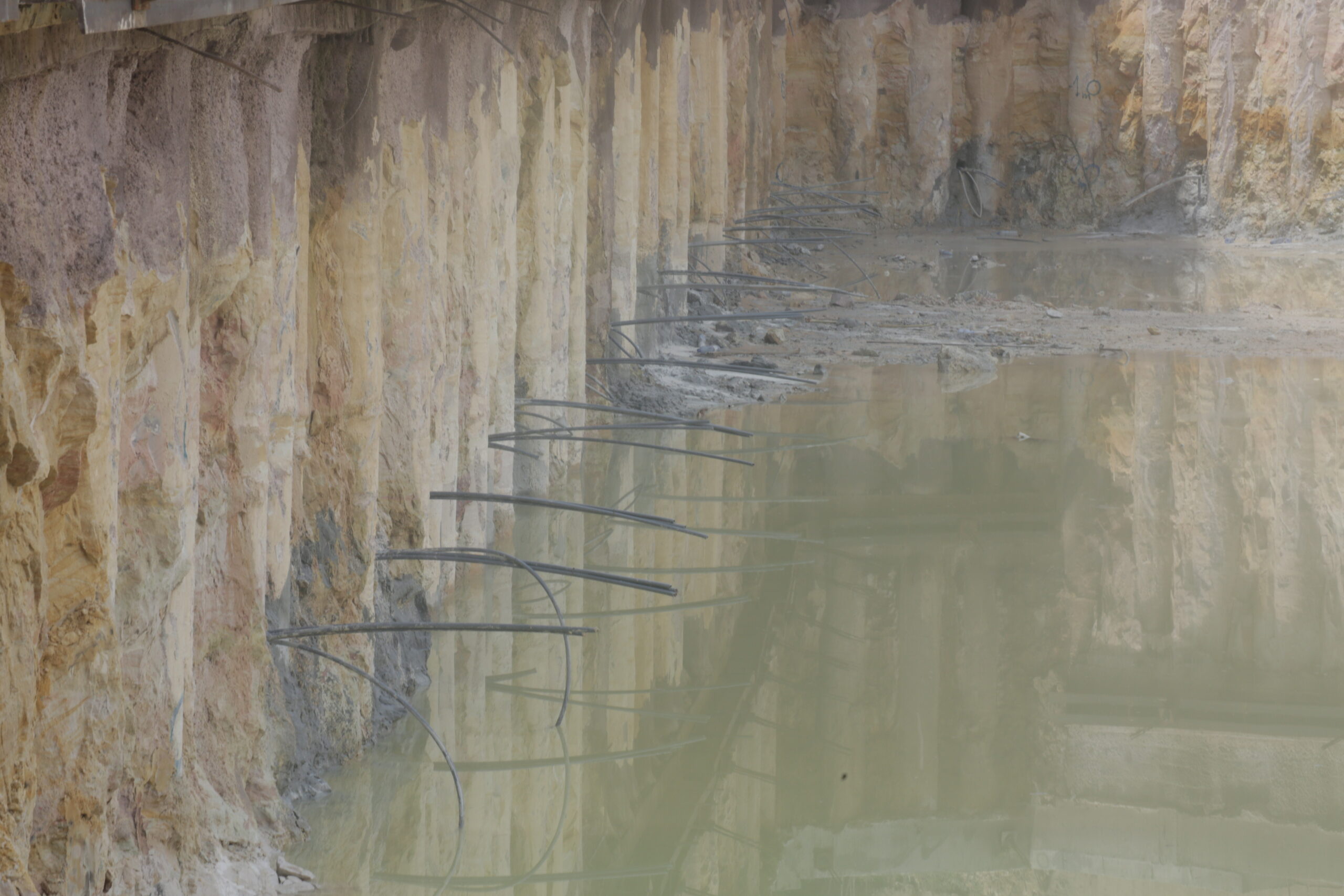 | Need for Lateral Stability in a 13 m Deep Excavation | Three Rows of Prestressed Ground Anchors Providing Horizontal Restraint |