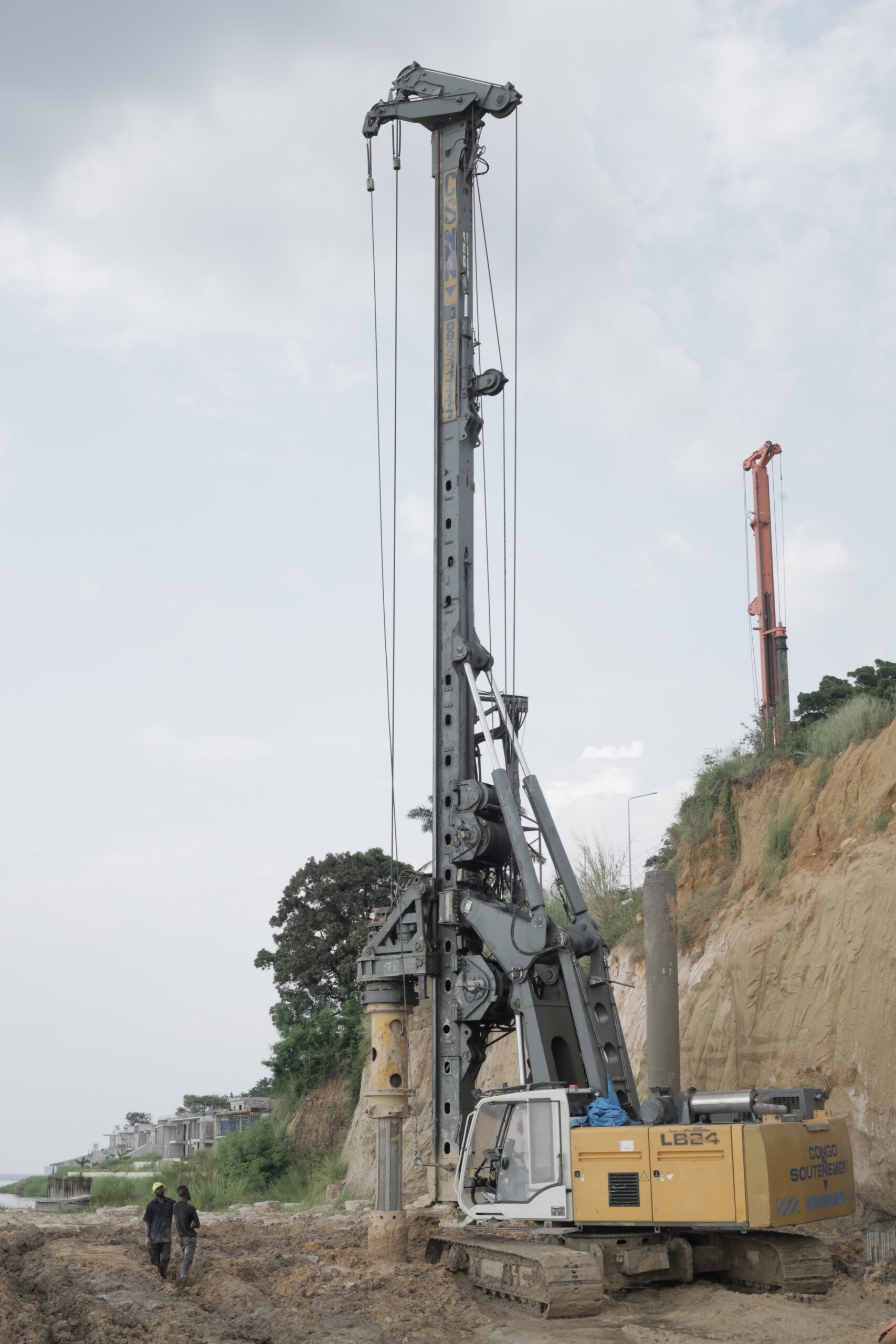 The Water Front project involves the construction of multiple villas along the Congo River, where varying soil conditions and proximity to water necessitated a deep foundation solution. Each villa is supported by 600 mm cast-in-place bored piles reaching depths of around 14 meters, ensuring reliable load transfer into competent strata and minimizing settlement.